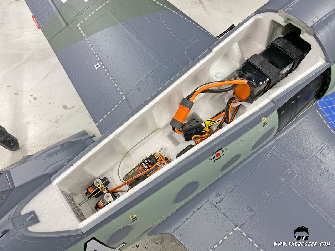 adalah badan pesawat besar yang bagus yang telah dipecah menjadi hanya beberapa komponen besar yang berarti perakitan itu cepat dan mudah. Perakitan dimulai dengan ekor horizontal yang merupakan bagian kiri dan bagian kanan yang tergelincir di atas spar karbon dan masing -masing ditahan dengan sekrup mesin masing -masing di bawahnya. Bagian Pusat Sayap diadakan di tempatnya (fitur konektor yang dipasang keras untuk flap/aileron/retracts) dengan 4 sekrup dan panel sayap luar dibagi di persimpangan flap/aileron dan meluncur dengan tabung karbon dan mengambil tempat menggunakan beberapa penjaga snap-in plastik. Dengan panel luar yang dapat dilepas dengan cara ini, roda pendaratan tetap melekat pada badan pesawat yang benar -benar menyederhanakan transportasi sambil juga membuat perakitan di lapangan dengan sangat cepat.